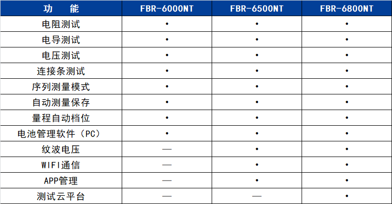 ● 測試類型:可測試電壓、內(nèi)阻、電導(dǎo)及連接條參數(shù)指標(biāo),還可根據(jù)用戶需求升級微歐、溫度、鋰電巡檢等功能