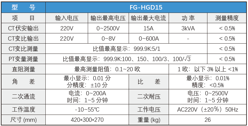 ● 試驗人員無需接觸被測試設(shè)備,遠離高壓電路,確保人身安全技術(shù)參數(shù)
