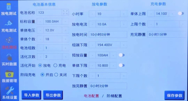 針對(duì)容量降低、性能下降的電池組,可通過設(shè)置多次循環(huán)充放電激活電池活性,提升整組電池性能。
