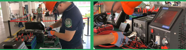 ②PA電子技術(shù)講解人員現(xiàn)場(chǎng)演示動(dòng)力電池維修設(shè)備的操作,通過(guò)對(duì)動(dòng)力電池故障定位、故障修復(fù)、維護(hù),讓學(xué)員更快的掌握實(shí)際維修工況的學(xué)習(xí)環(huán)境。