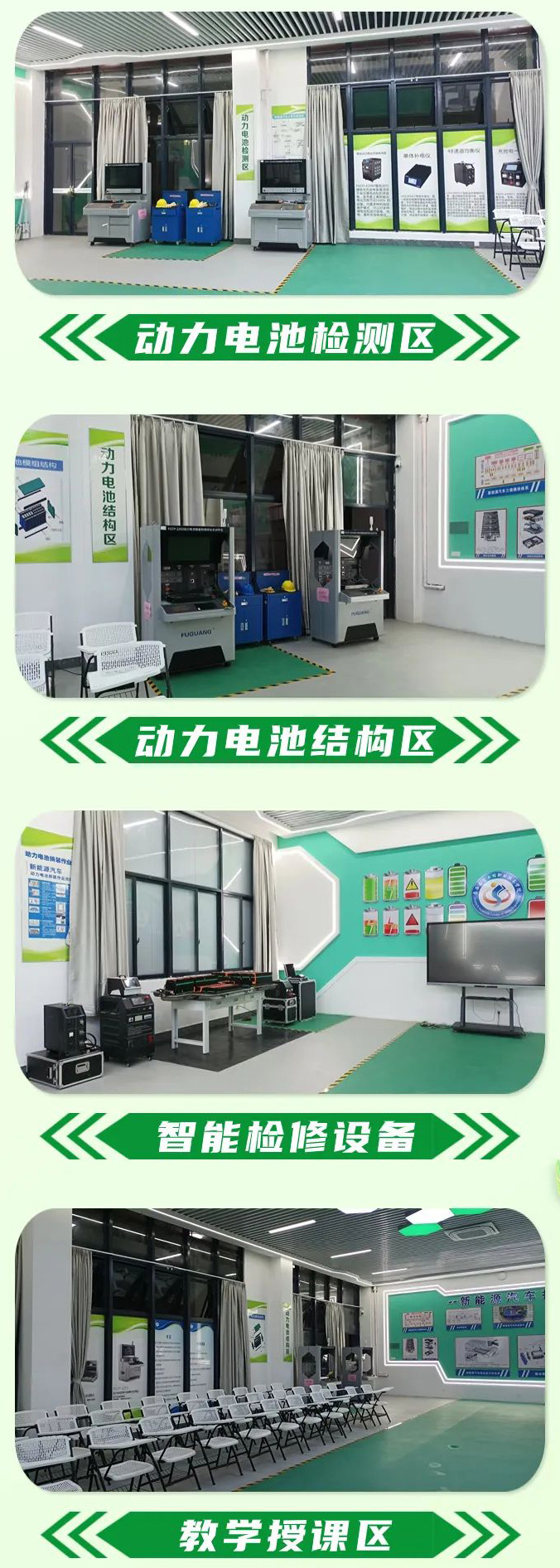 PA電子官網根據新能源汽車動力電池專業課程體系重構,按專業課程實施為導向建設滿足新能源汽車電池檢修全工序人才培養一體化的教學實訓室。