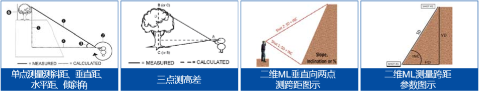 ● 具有單點測距測角、單點測垂直相對高度、兩點測跨距、三點測高等操作功能