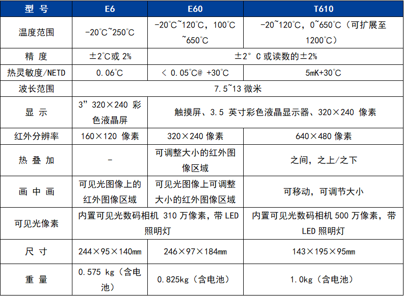 ● 其他高端功能:5個測溫點、5個方框區域、等溫線、溫差、自動冷/熱點追蹤,讓E系列熱像儀具備更強實力