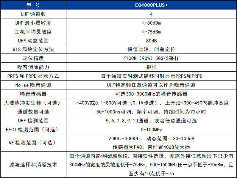 EC4000PLUS+超高靈敏度能夠檢測微小局放信號;大于70dB的動態范圍能夠確保放電的PRPS和PRPD的圖譜能夠得到完整的展現,保證圖譜不失真。多頻段的快速切換能夠實現噪音信號和局放信號的分離,解決測試中的噪音干擾問題,實現快速準確的定位。