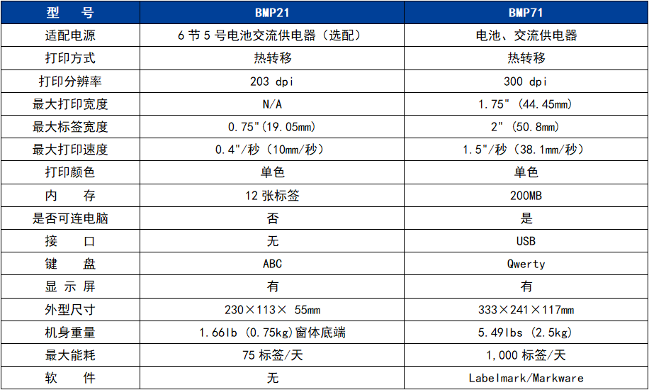 使用BMP21/BMP71手持式熱轉移標簽打印機可以輕松打印各類電線電纜標識、資產標識、條形碼、安全/通用標識。在網絡數據布線、電力電纜布線、設備識別標示、維護維修安全標示、電控盤與數據機架標示、實驗室采樣識別等領域中有廣泛的應用。其具有先進的序列號、條形碼與特殊字符圖形系統,可存儲多種標簽模板。操作界面簡單易用,配合寬大的顯示屏幕與背光功能,能快速打印所需的識別標簽。外觀極具現代感,握拿方式符合人體工學,防滑、耐摔、防撞擊。